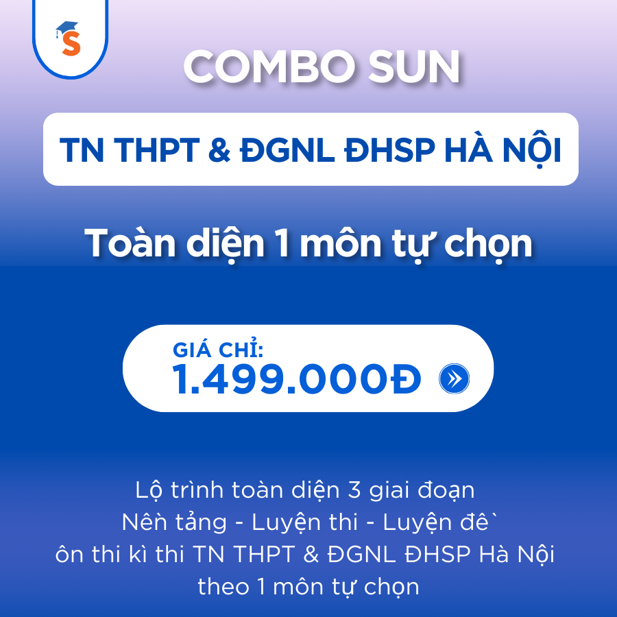- Combo SUN TN THPT & ĐGNL SP HÀ NỘI (2K8) - TOÀN DIỆN 1 MÔN TỰ CHỌN