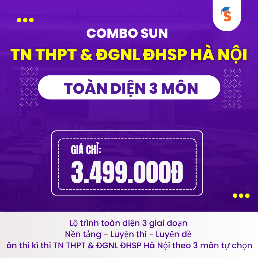 - Combo SUN TN THPT & ĐGNL SP HÀ NỘI (2K8) - TOÀN DIỆN 3 MÔN TỰ CHỌN
