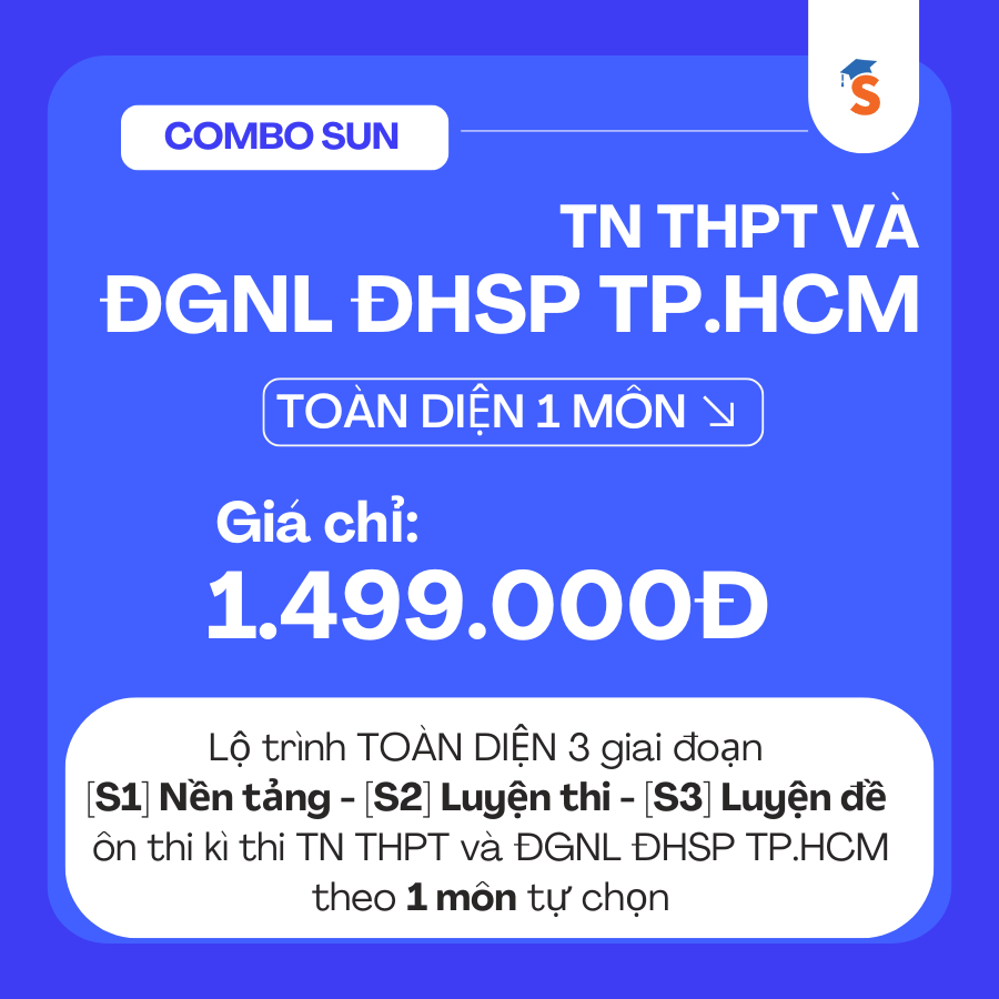 - Combo SUN TN THPT & ĐGNL SP HCM (2K8) - TOÀN DIỆN 1 MÔN TỰ CHỌN