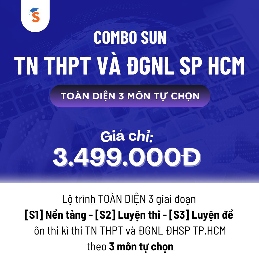 - Combo SUN TN THPT & ĐGNL SP HCM (2K8) - TOÀN DIỆN 3 MÔN TỰ CHỌN
