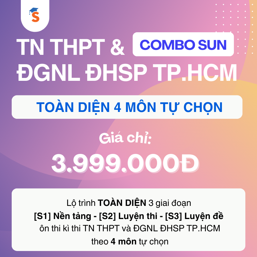 - Combo SUN TN THPT & ĐGNL SP HCM (2K8) - TOÀN DIỆN 4 MÔN TỰ CHỌN