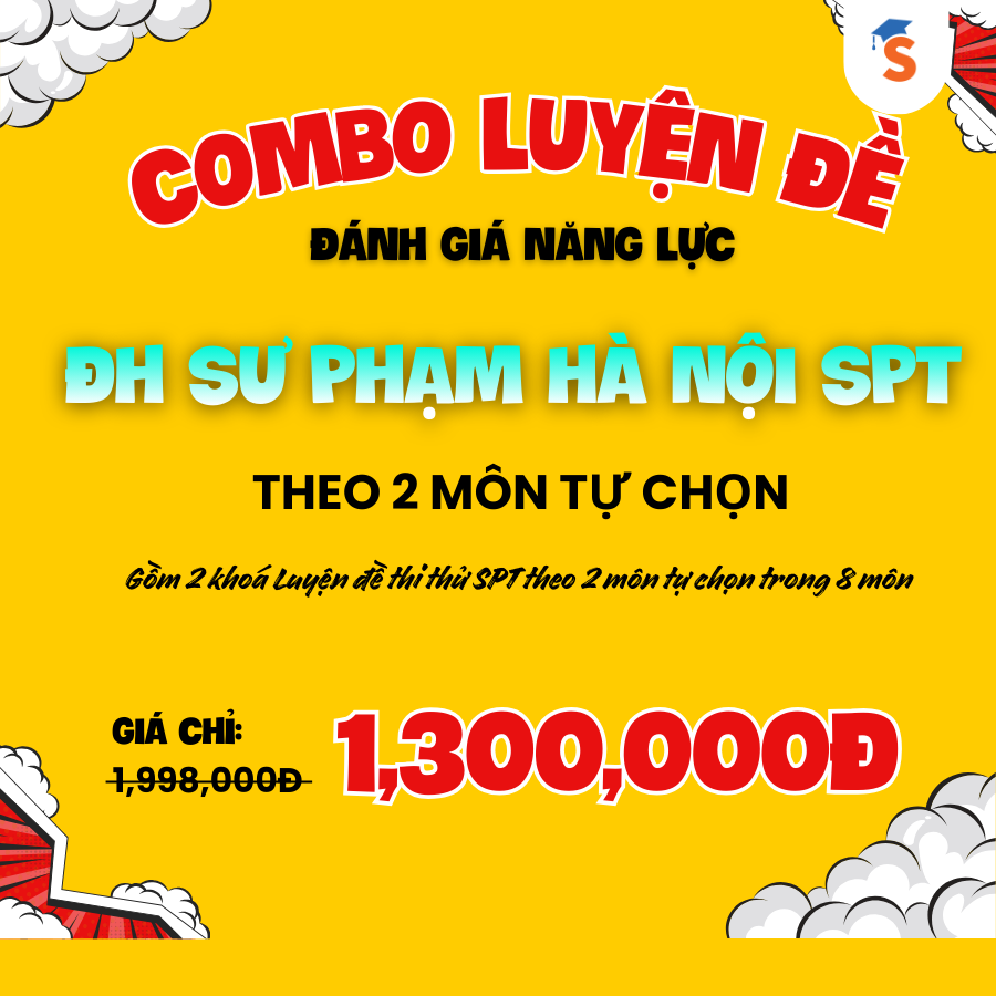 - - 02 Khoá [S3] Luyện đề thi thử ĐGNL Sư phạm Hà Nội SPT theo 2 môn tự chọn trong 8 môn (Toán, Văn, Anh, Lí, Hoá, Sinh, Sử, Địa)