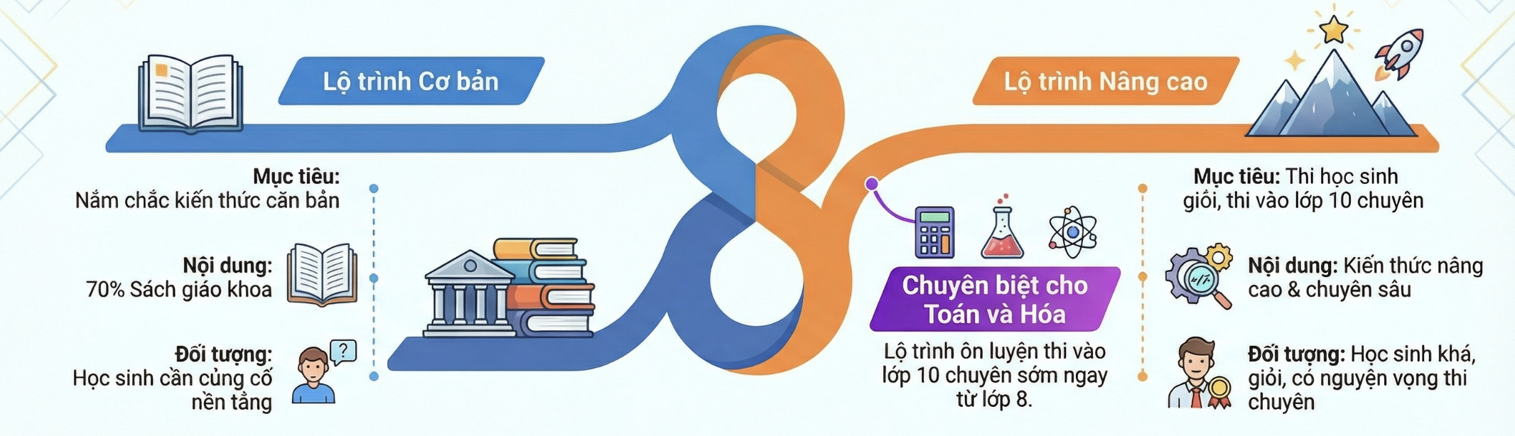 - Ba mẹ muốn con học đúng sức, không bị "ngợp" trước kiến thức lớp 8? Combo này cho phép con tự chọn trình độ để tối ưu hóa hiệu quả học tập ngay tại nhà.