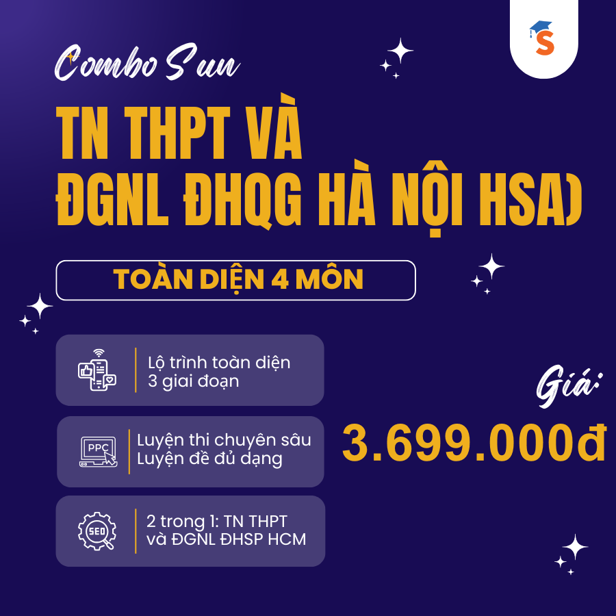 - Combo SUN TN THPT & ĐGNL HÀ NỘI (HSA) - TOÀN DIỆN 4 MÔN TỰ CHỌN | THPT & HSA