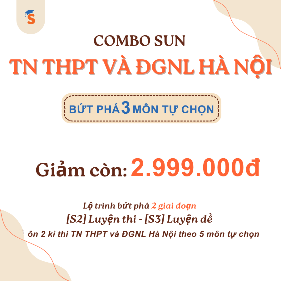 - Combo SUN TN THPT & ĐGNL HÀ NỘI (HSA) - BỨT PHÁ 3 MÔN TỰ CHỌN | THPT & HSA