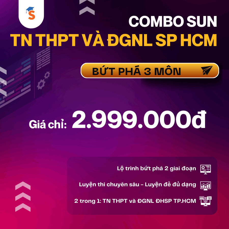 - Combo SUN TN THPT & ĐGNL SP HCM (H-SCA) - BỨT PHÁ 3 MÔN TỰ CHỌN | THPT & H-SCA