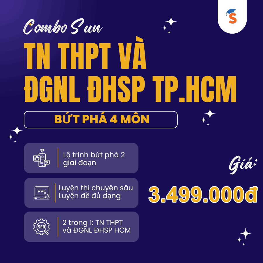 - Combo SUN TN THPT & ĐGNL SP HCM (H-SCA) - BỨT PHÁ 4 MÔN TỰ CHỌN | THPT & H-SCA