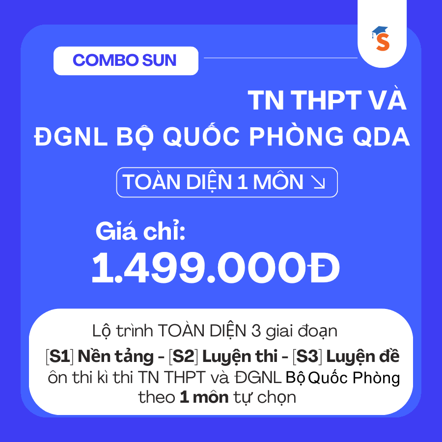 - Combo SUN TN THPT & ĐGNL BỘ QUỐC PHÒNG QDA - TOÀN DIỆN 1 MÔN TỰ CHỌN | THPT & QDA