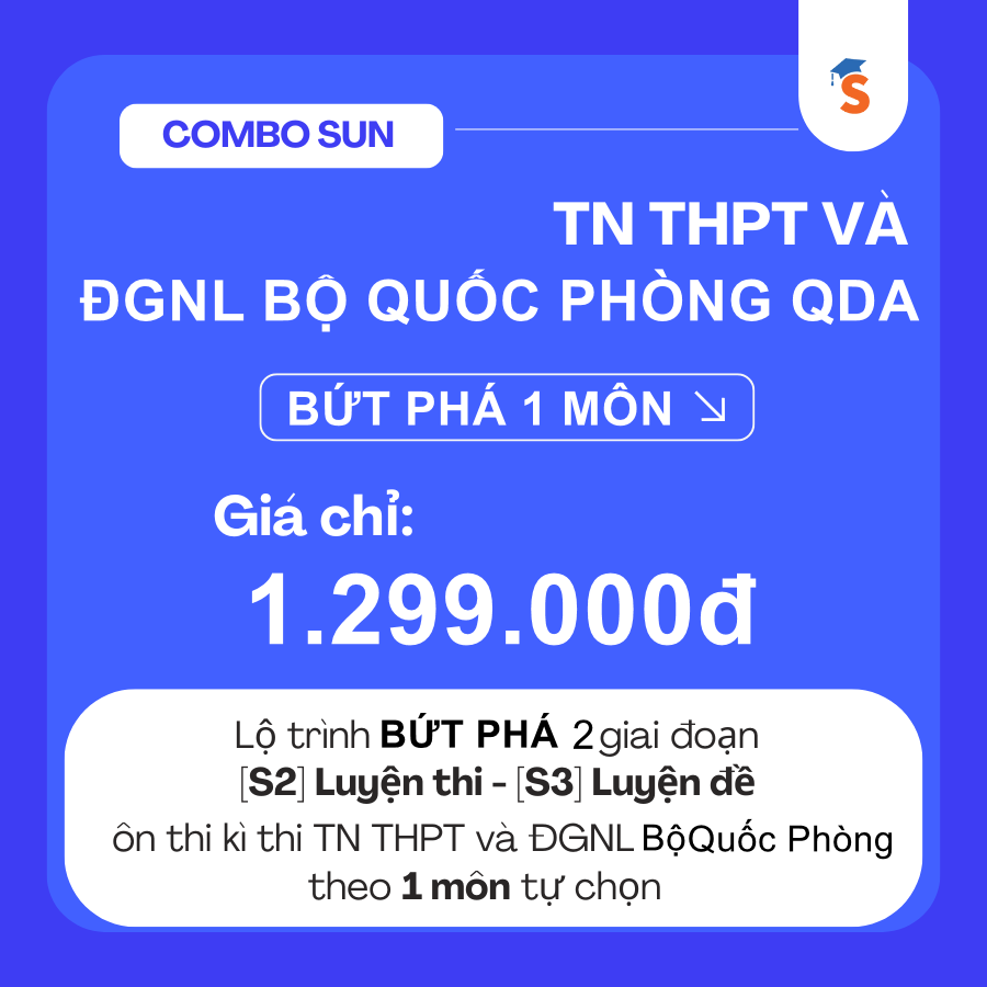 - Combo SUN TN THPT & ĐGNL BỘ QUỐC PHÒNG QDA - BỨT PHÁ 1 MÔN TỰ CHỌN | THPT & QDA