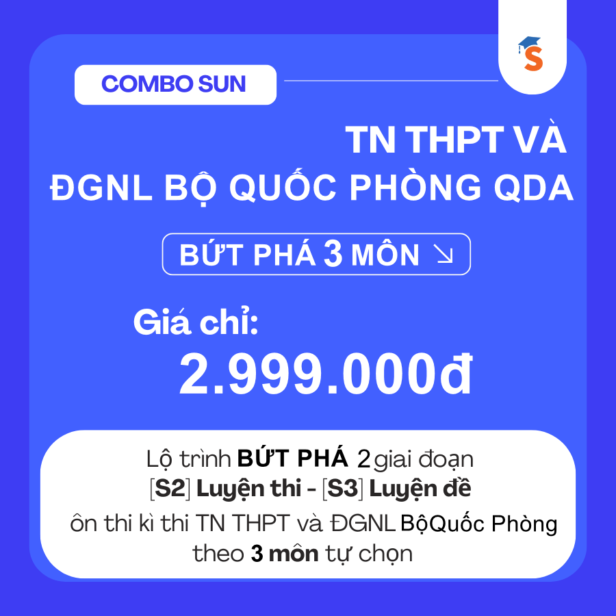 - Combo SUN TN THPT & ĐGNL BỘ QUỐC PHÒNG QDA - BỨT PHÁ 3 MÔN TỰ CHỌN | THPT & QDA