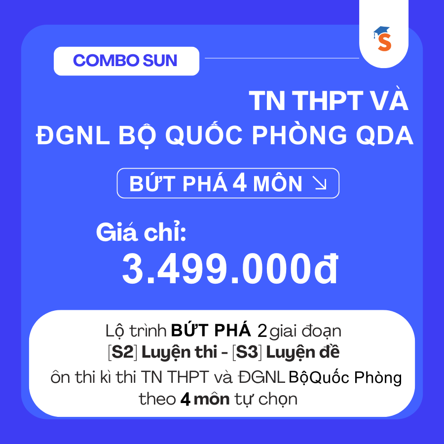 - Combo SUN TN THPT & ĐGNL BỘ QUỐC PHÒNG QDA - BỨT PHÁ 4 MÔN TỰ CHỌN | THPT & QDA