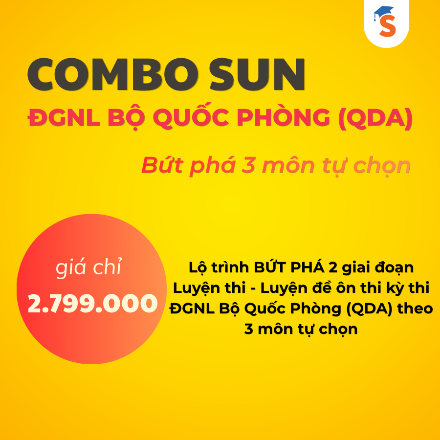 - Combo SUN ĐGNL BỘ QUỐC PHÒNG (QDA) - BỨT PHÁ 3 MÔN TỰ CHỌN | QDA