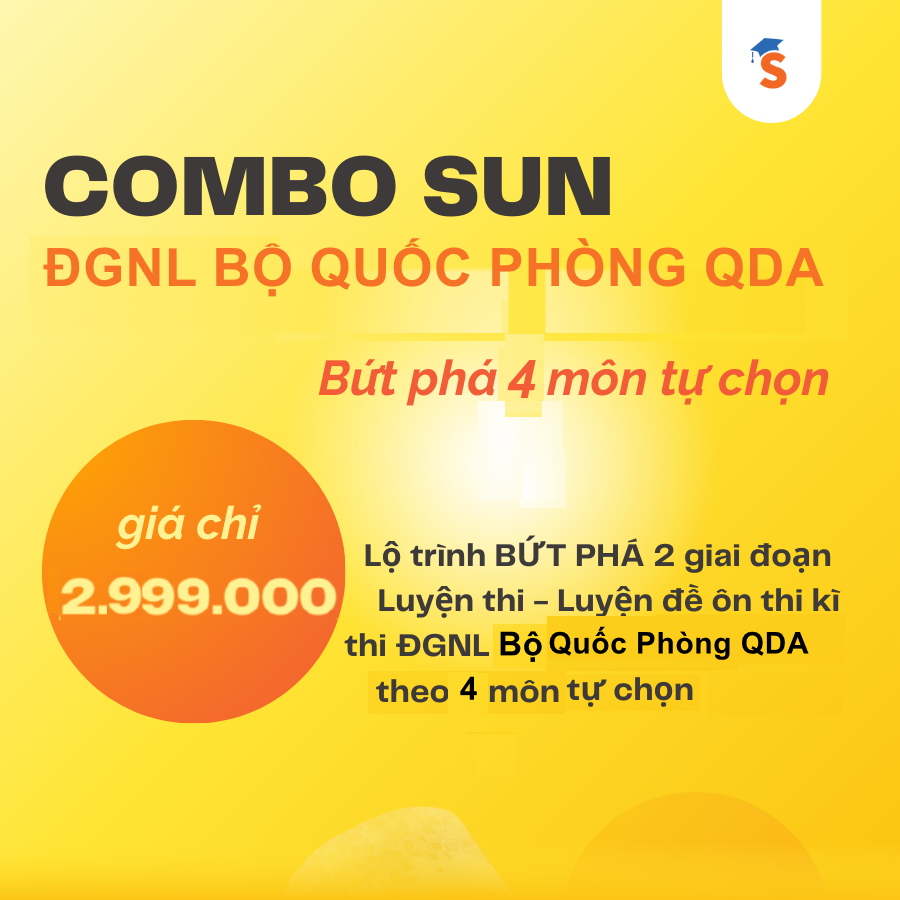 - Combo SUN ĐGNL BỘ QUỐC PHÒNG (QDA) - BỨT PHÁ 4 MÔN TỰ CHỌN | QDA